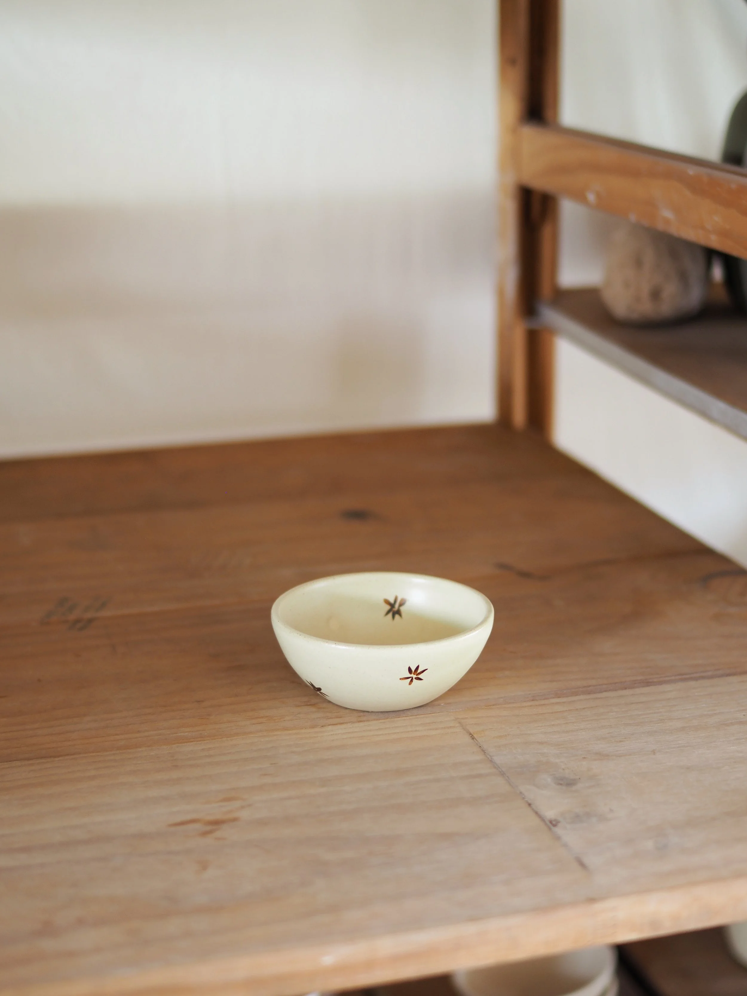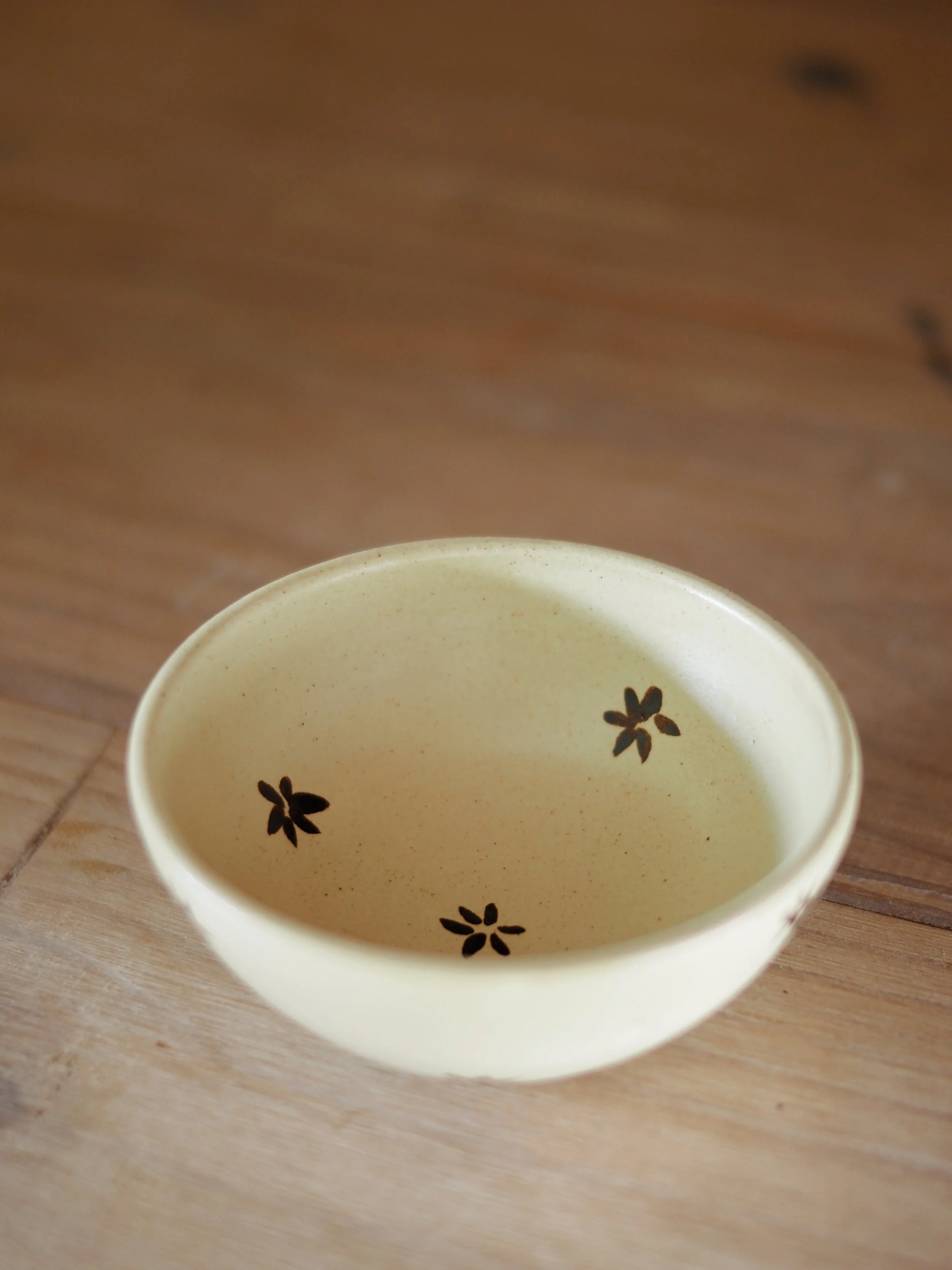 Butter coloured glaze with hand painted iron oxide floral details, this little dish is a versatile and unique addition to a pottery lovers collection.